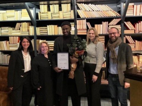 The FF award winner Badruidin Ga úr in the middle, surrounded by FF ceo Susanne Tiger and the jury Max Malka, Emelie Szemraj, Thomas Rosso.